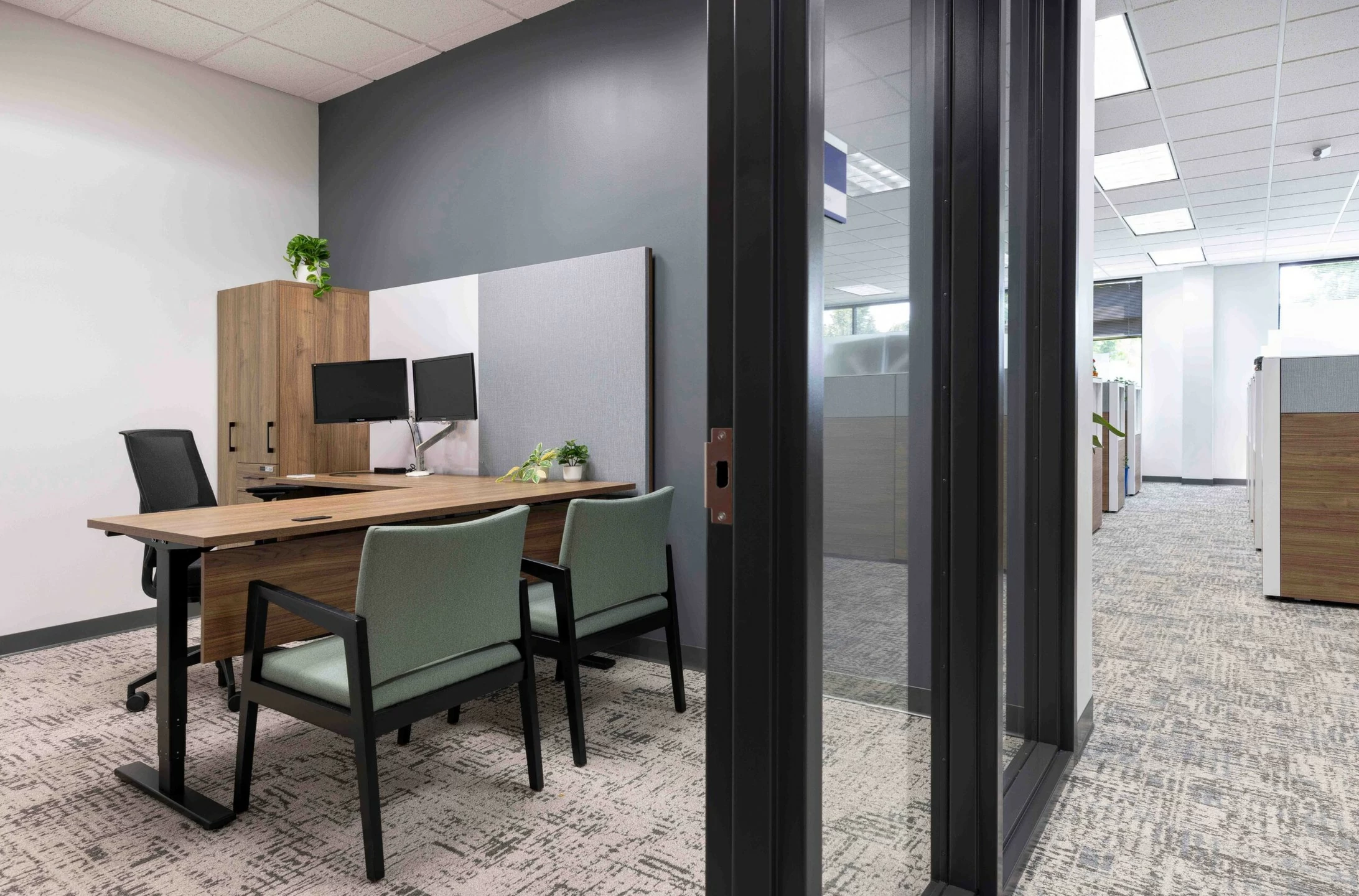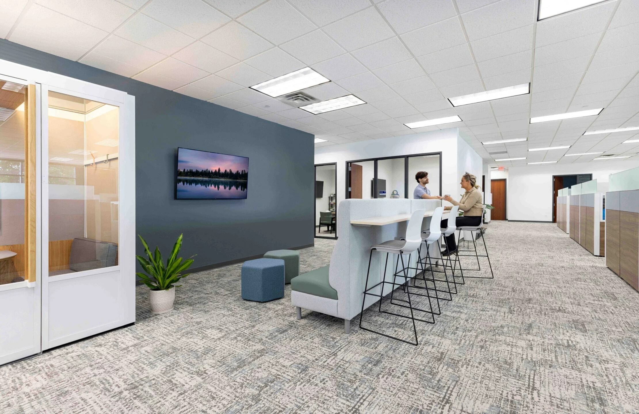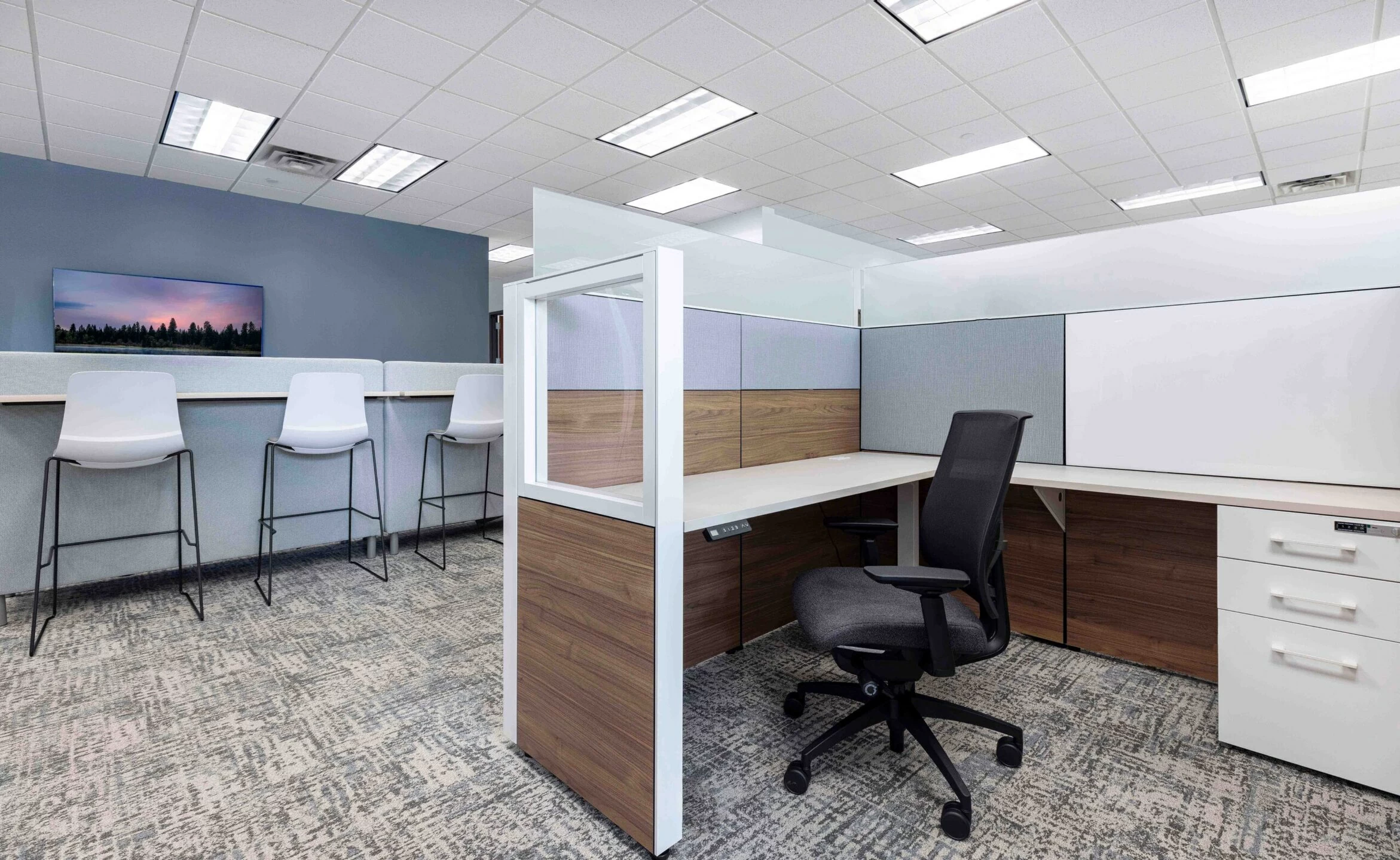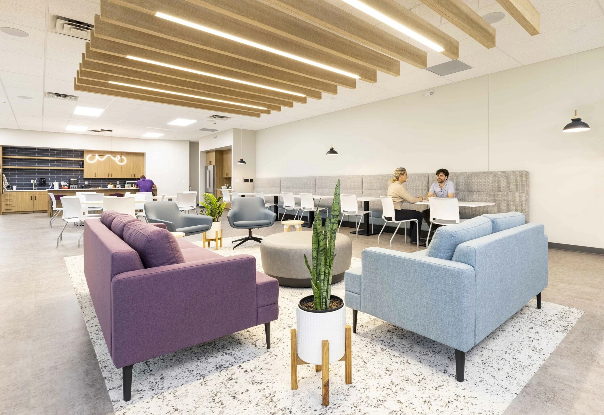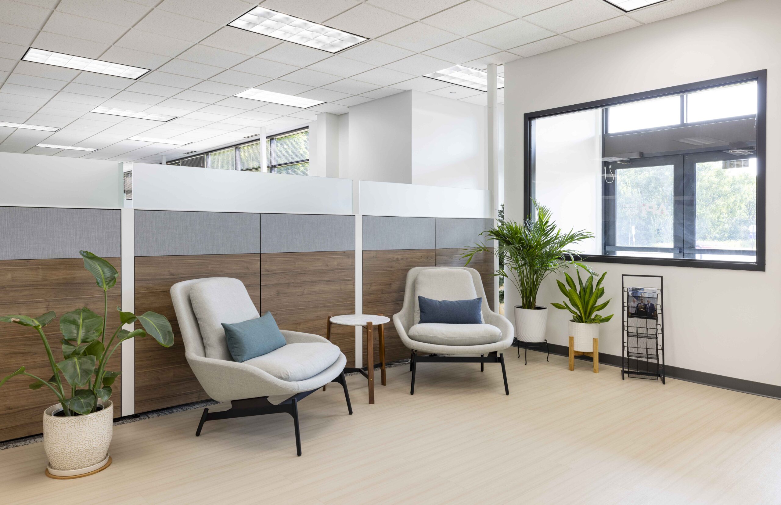 Spectrum Interiors provided comprehensive design and planning services for this newly acquired office, guiding the project from concept through completion. Our team delivered full space planning and architectural drawings to bring the client’s vision to life—creating a flexible environment that supports a variety of working preferences. The build-out includes thoughtfully designed workstations, private offices, multiple conference rooms, and touchdown spaces for collaboration, all centered around a stunning and relaxing breakroom.