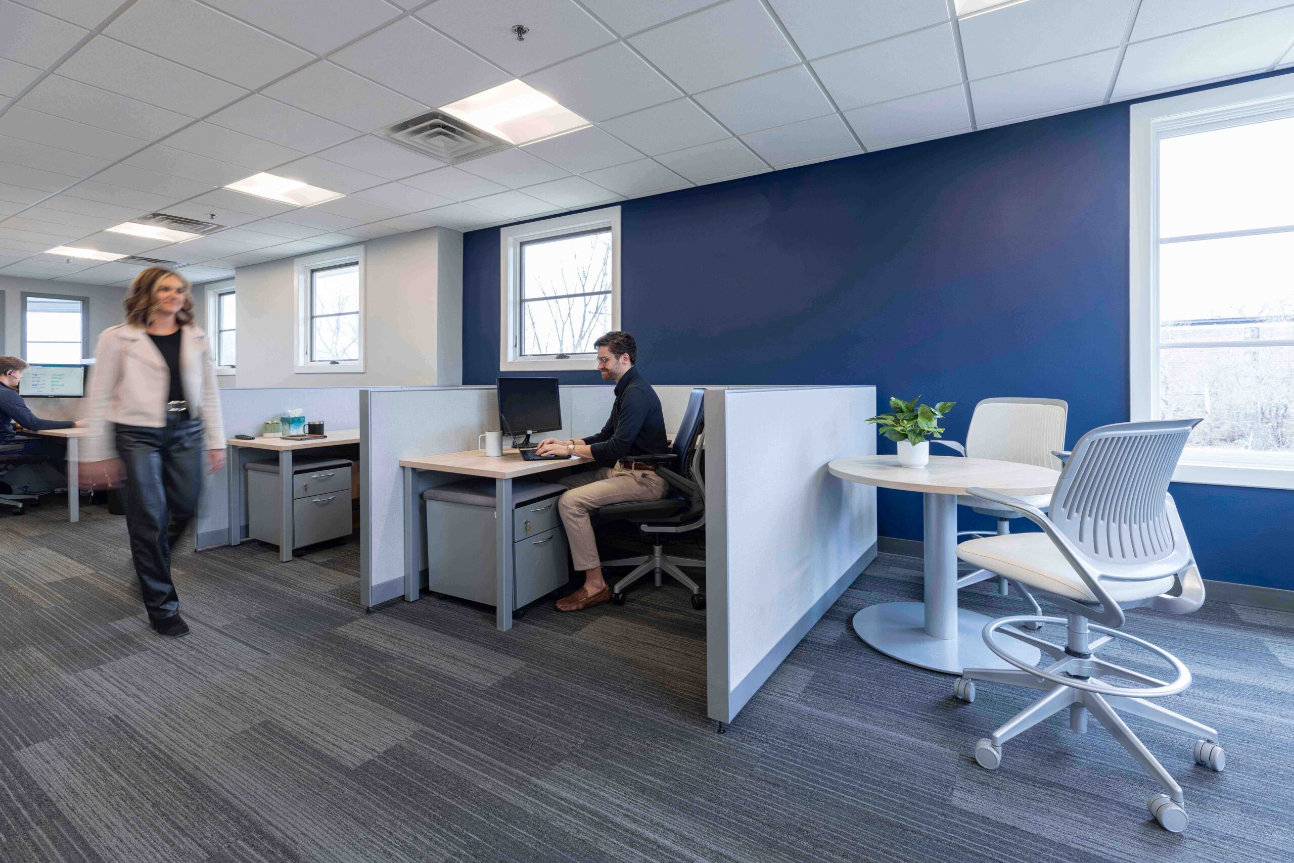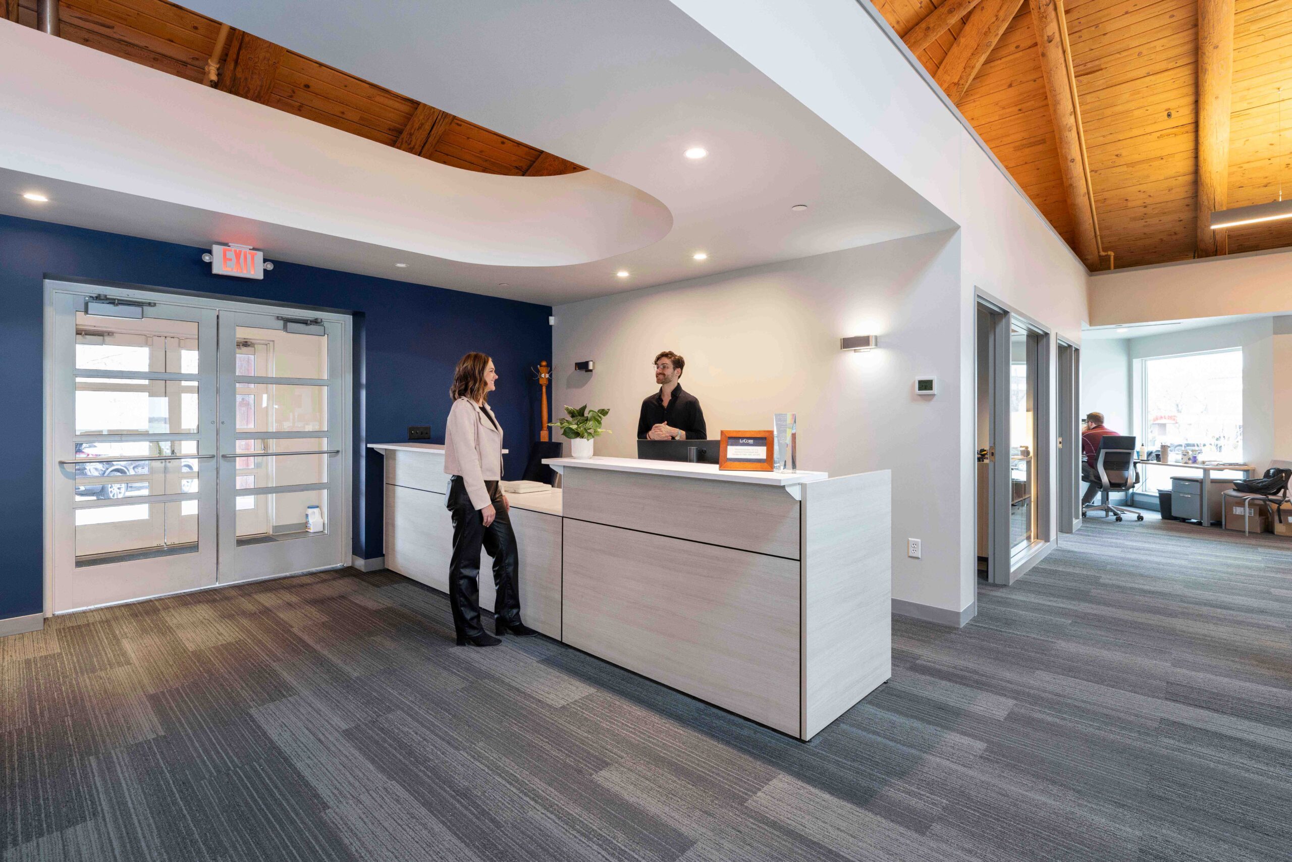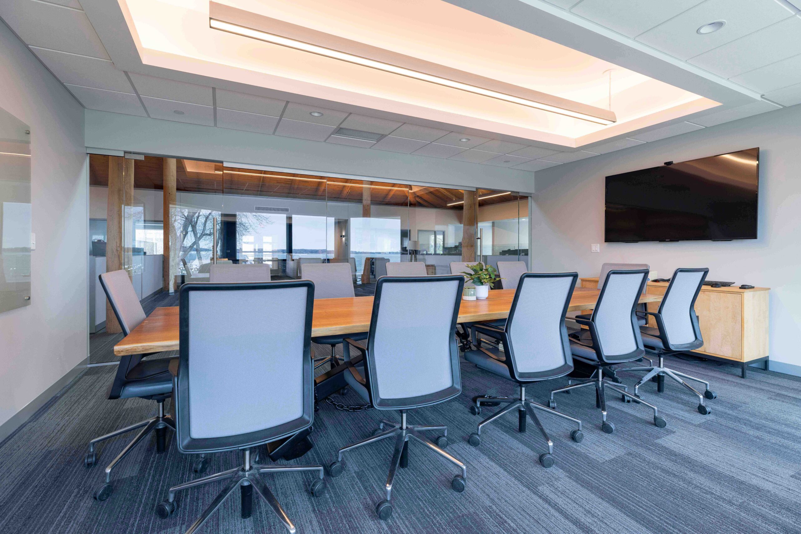Spectrum Interiors partnered with LoCorr Financial to transform their workplace while preserving the architectural character of the building. Our team repurposed existing furniture and delivered a fully furnished environment designed to meet evolving needs. Private offices were reconfigured with new walls and finishes, while glass fronts throughout brought in natural light and reinforced exterior views.