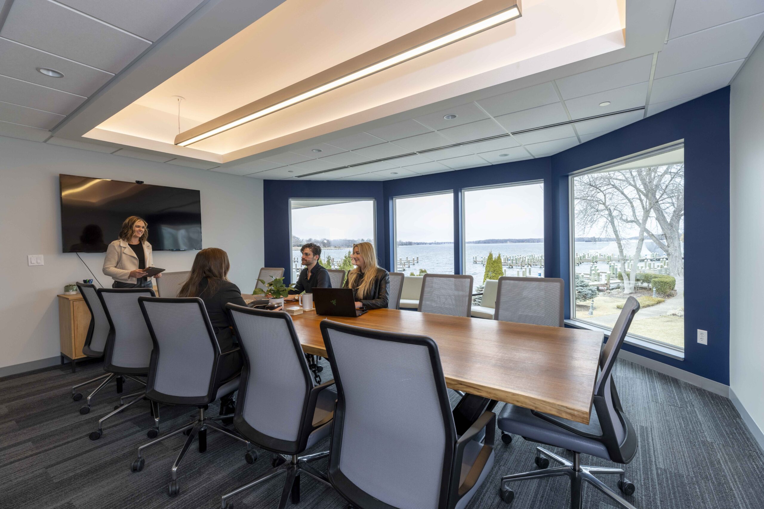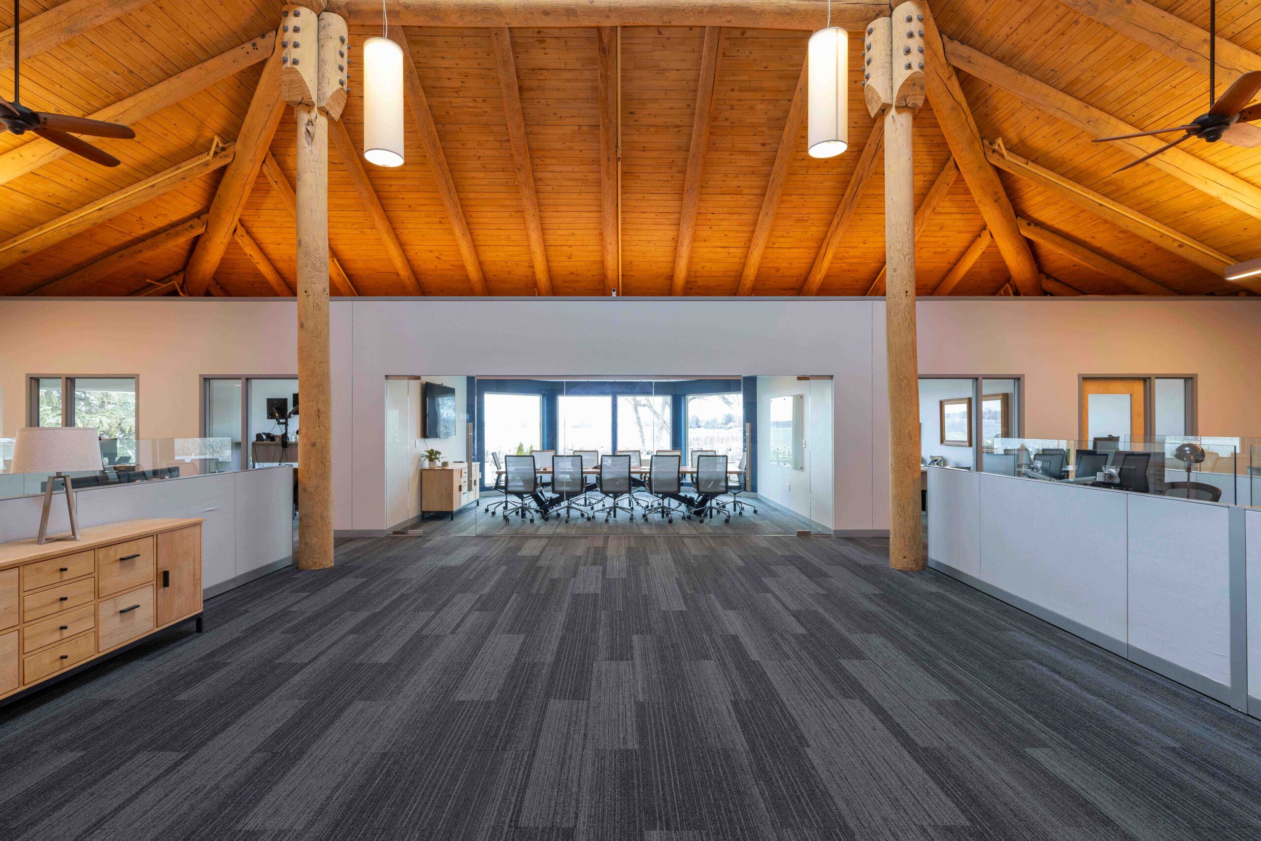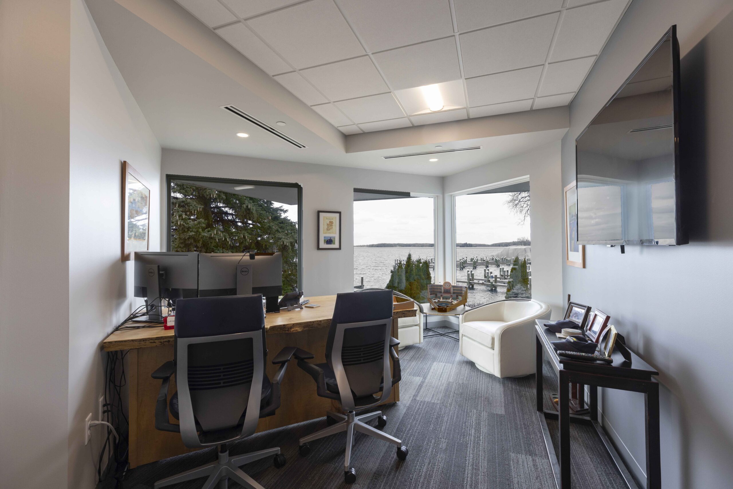 Spectrum Interiors partnered with LoCorr Financial to transform their workplace while preserving the architectural character of the building. Our team repurposed existing furniture and delivered a fully furnished environment designed to meet evolving needs. Private offices were reconfigured with new walls and finishes, while glass fronts throughout brought in natural light and reinforced exterior views.